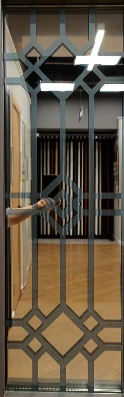 | Вставка: | Стеклопакет трёхкамерный СБ-1 — тонированная бронза зеркальная, решётка Эмирида (лазерная резка 2 мм.) |
